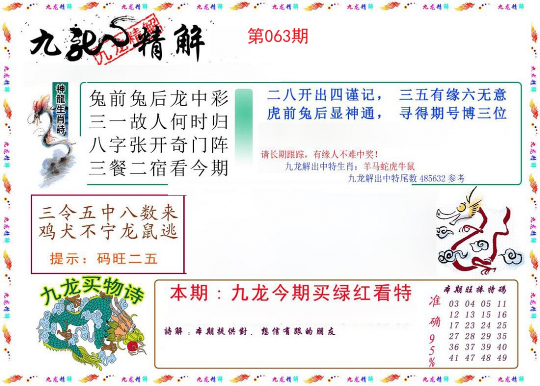 | 048期: ⑨肖 | 鼠牛龙猪鸡蛇马猴兔 | 龙03 |